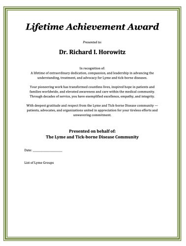 Instructions: Lifetime Achievement Award for Dr. Richard Horowitz